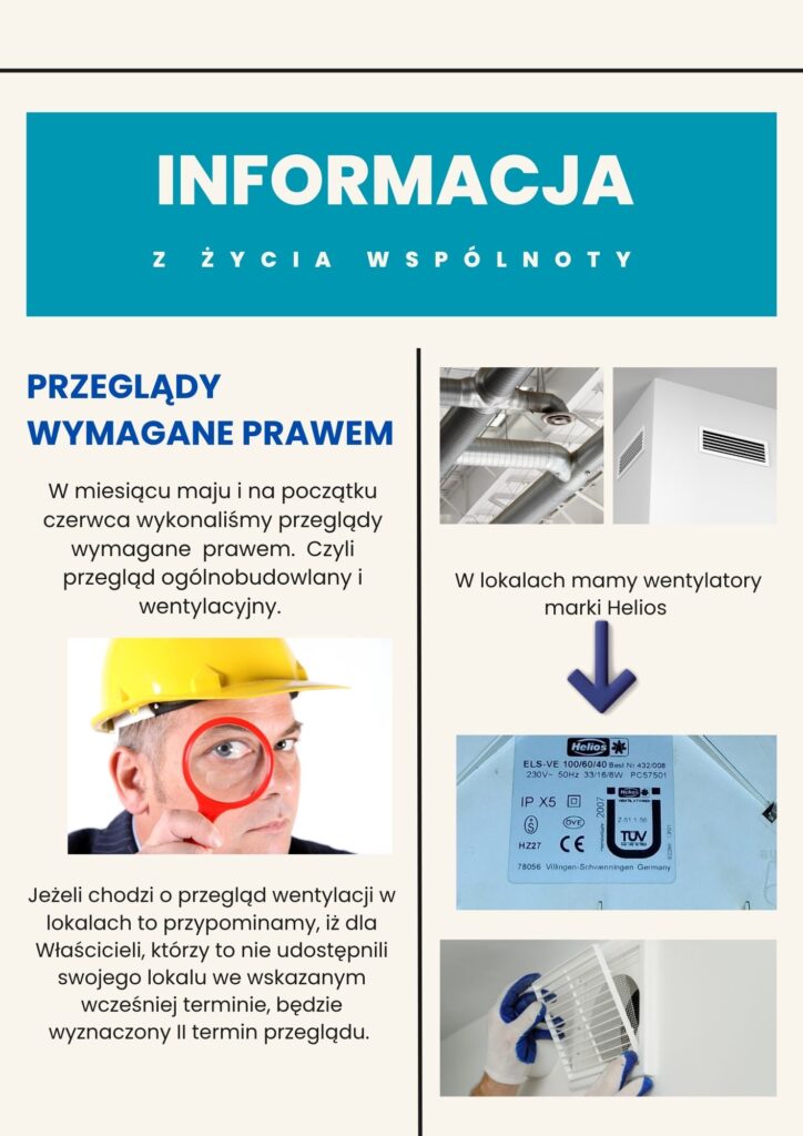 Przegląd odbywa się zgodnie z przepisami prawa budowlanego oraz dla zapewnienia bezpieczeństwa mieszkańców.