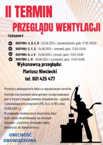 informujemy o II terminie obowiązkowego przeglądu wentylacji w lokalach, który odbędzie się: